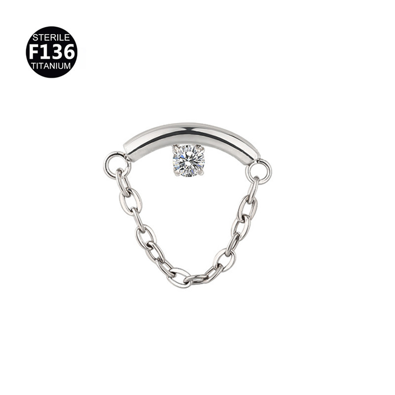 This sophisticated labret features a sleek polished arc accented by a brilliant-cut center CZ and a delicate hanging cable chain for a layered aesthetic. Engineered for versatility and comfort, it is the perfect statement piece for Helix, Conch, Tragus, and Lobe piercings, offering a high-mirror polish that is gentle on healing or sensitive tissue.