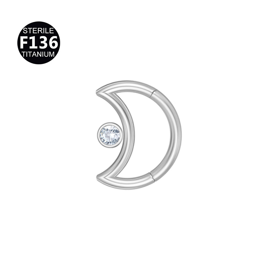 This luxurious hinged clicker features three rows of precision-set round cubic zirconia, offering an intense, multi-dimensional sparkle from every angle. Crafted from implant-grade titanium with a seamless hinge mechanism, it provides a secure and comfortable fit for Septum, Daith, Helix, and Lobe piercings.